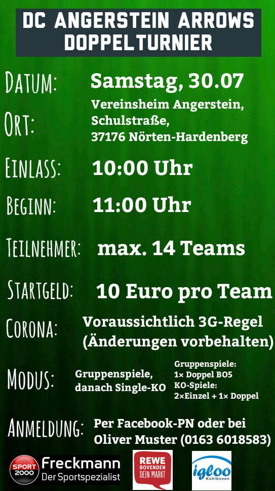 Bei uns finden regelmäßig verschiedene Turniere statt. Die Plakate werden in der Regel immer über Social Media geteilt.